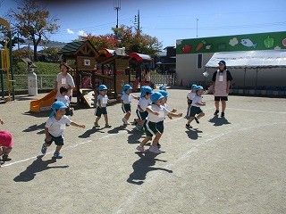 今夏も暑すぎて、園庭活動を中止の日が続きました。やっと、園庭活動を存分に楽しめる気温になり、子どもたちは、朝から元気に遊んでいます。 ちゅうりっぷ組のお友達は、10月の運動会に向けて、園庭でダンスやかけっこの練習が始まりました(*^-^*) かけっこは、みんなで走りだしちゃいました!がんばれ~ 幼稚園のお友達がかけっこしているのを、応援できていまし