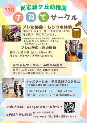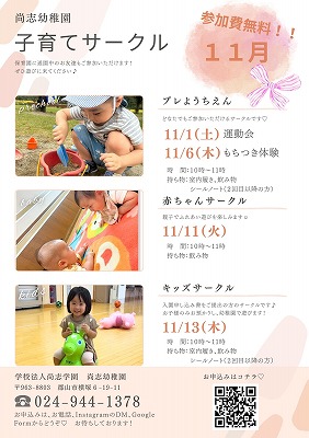11月 プレ幼稚園・赤ちゃんサークルのご案内