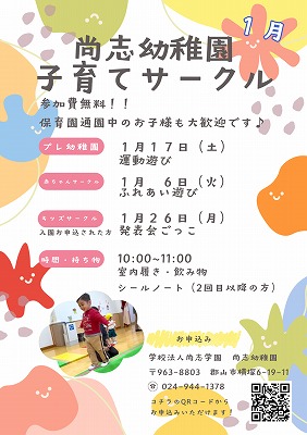 1月 プレ幼稚園のご案内です。